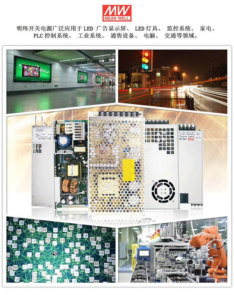 高可靠开关电源机型, 可承受5G震动与70°C高工作环温,全机使用105°C高寿命电解电容,可承受300VAC突波输入达5秒,适合使用于较严苛的工作环境,。