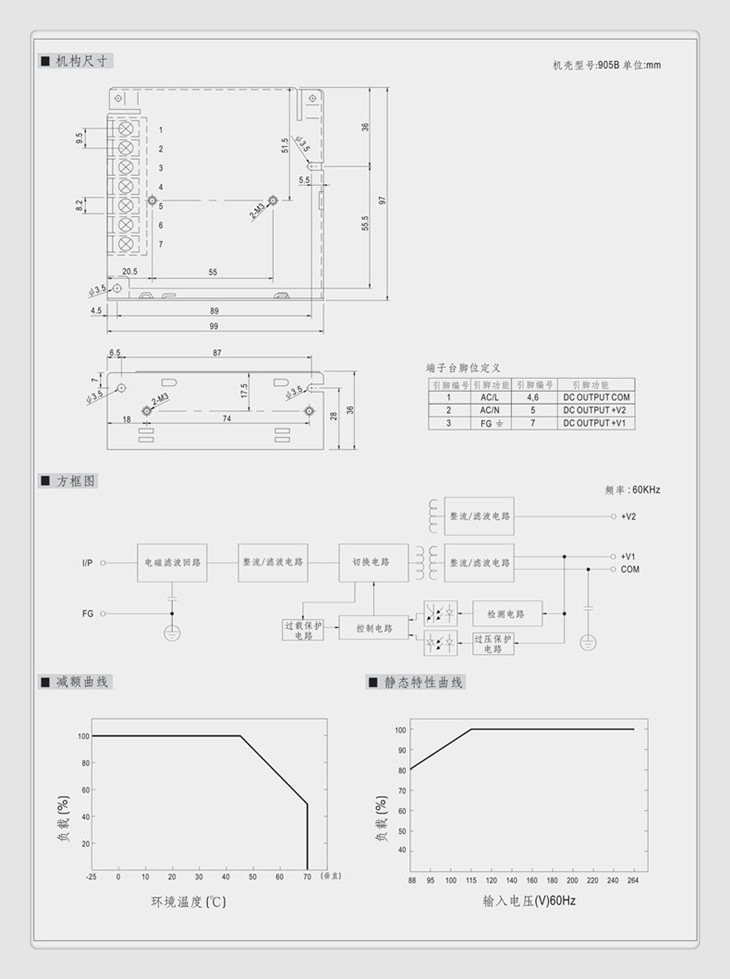 过载保护 过电流点在110%~150%,自动侦测自动复原