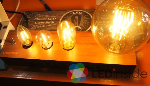 泰国当地大厂Lamptan推出一系列LED灯丝灯产品,他们也有自己的组装产线,进口两岸的LED灯丝晶片来用。