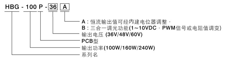 HBG-100采恒流输出设计(C.C. mode),HBG-160/240采恒压+恒流输出设计(C.V. + C.C. mode)