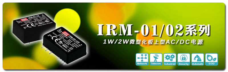 bb平台体育艾弗森已完整推出IRM-03/05/10/15/20/30/45/60(3~60W)的微型化板上型模块式AC/DC电源供应器家族,为进一步满足更低功率的产品应用需求,bb平台体育艾弗森新推出1W/2W的IRM-01/02系列。 本产品沿袭IRM-03系列,主要特点是微型化体积及极低空载功耗(<0.075W),可协助系统设计者解决终端设备PCB布局空间不足的困扰,并符合世界各国能耗规范对电子设备的低耗损要求。产品依应用场合需要,规划有插PIN式(IRM-01/02)及SMD式(IRM-01S/02S)两种机型,可供人工直接焊接或SMT全自动打件机安装於各类电子仪器或工控机电设备的PCB母板上,合适的应用包含工业电子设备、机械设备、工厂自动化设备、手持式电子仪器、物联网(IoT)数位化相关设备…等。