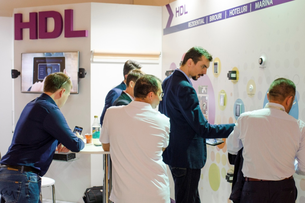 上个月,HDL低调出席在罗马尼亚首都布加勒斯特举行的第11届国际电气与自动化技术展览会(IEAS),向现场观众介绍了HDL的智能家居、智能酒店、智能建筑解决方案和系统产品,其中包括HDL智能家居应用软件、墙装智能控制面板、调光器、继电器、逻辑模块、传感器等等。这次展会由HDL罗马尼亚团队负责实施。展位的设计简约大方,不失优雅。所有的展品都安装在展位仅有的两面墙上,观众可以很方便地进入展位进行查看。加上HDL工作人员的专业讲解以及HDL产品的特点(或者说是优势),HDL展位吸引了大量的观众前往交流,展会进展顺利。